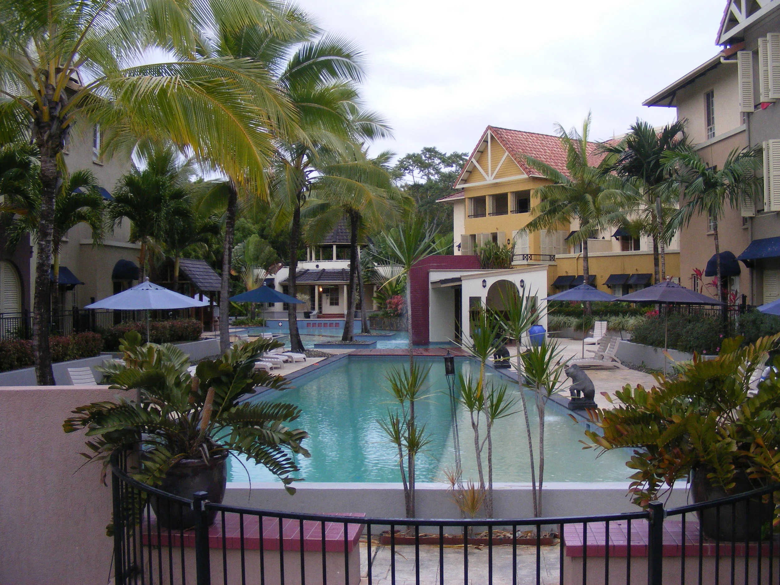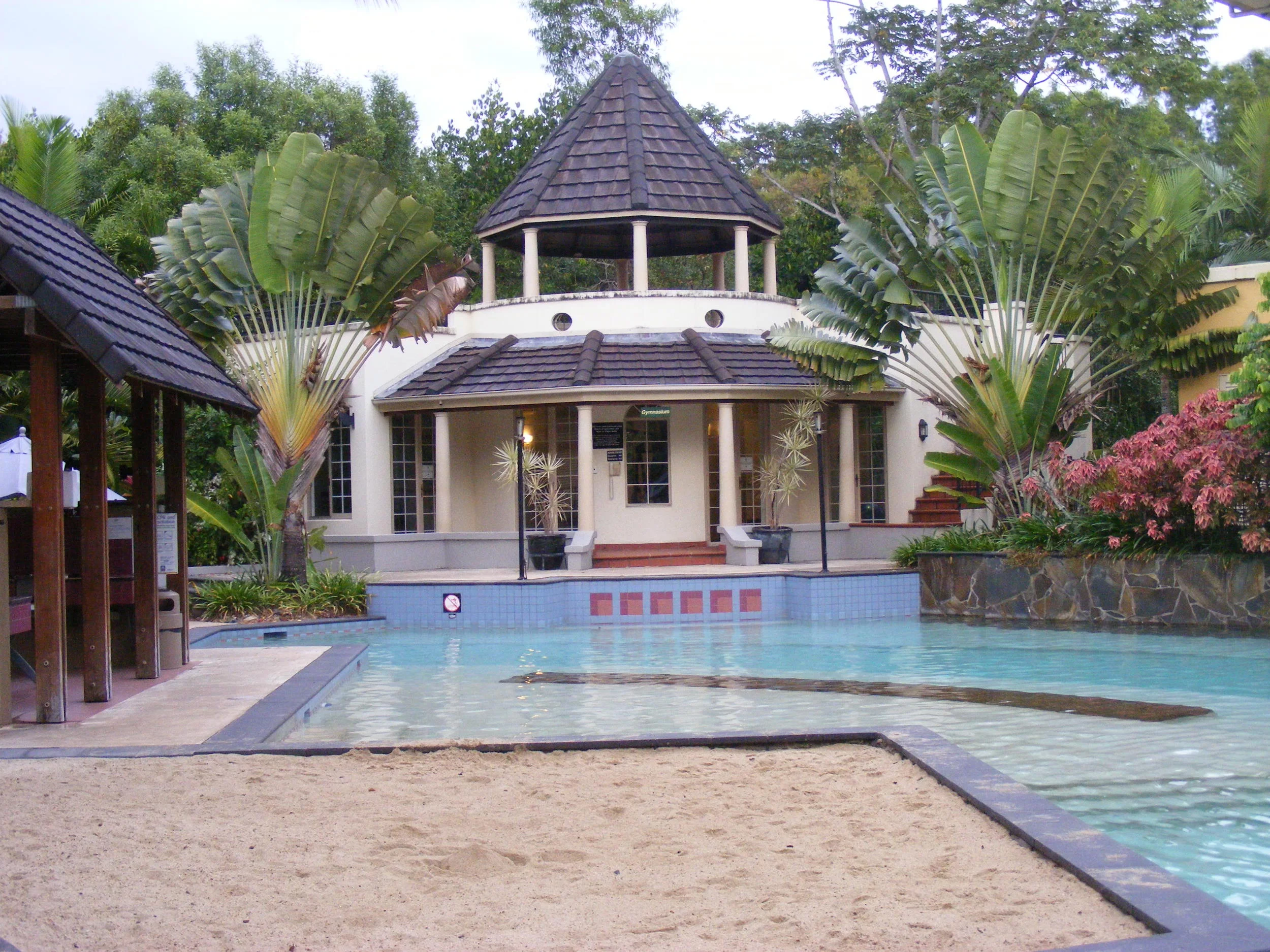 We flew into Cairns (pronounced "Cans") today and arrived at 2:00 PM. It was beautiful seeing the tropical Great Barrier Reef from the sky and all the lush tropical rain forests below. The entire coast line was submerged in a surreal turquoise glow unlike any body of water I had ever seen. We were a short drive to The Lakes Resort and Spa which is a five minute taxi from the town of Cairns. The Lakes had breathtaking verandas surrounded with all kinds of beautiful tropical plants. Our pool, which is one of many has an actual sand beach in addition to the concrete pool with lots of fountains and statuary. Our room is also located in the same building as the restaurant making it especially convenient. We did not want for anything at the Lakes!