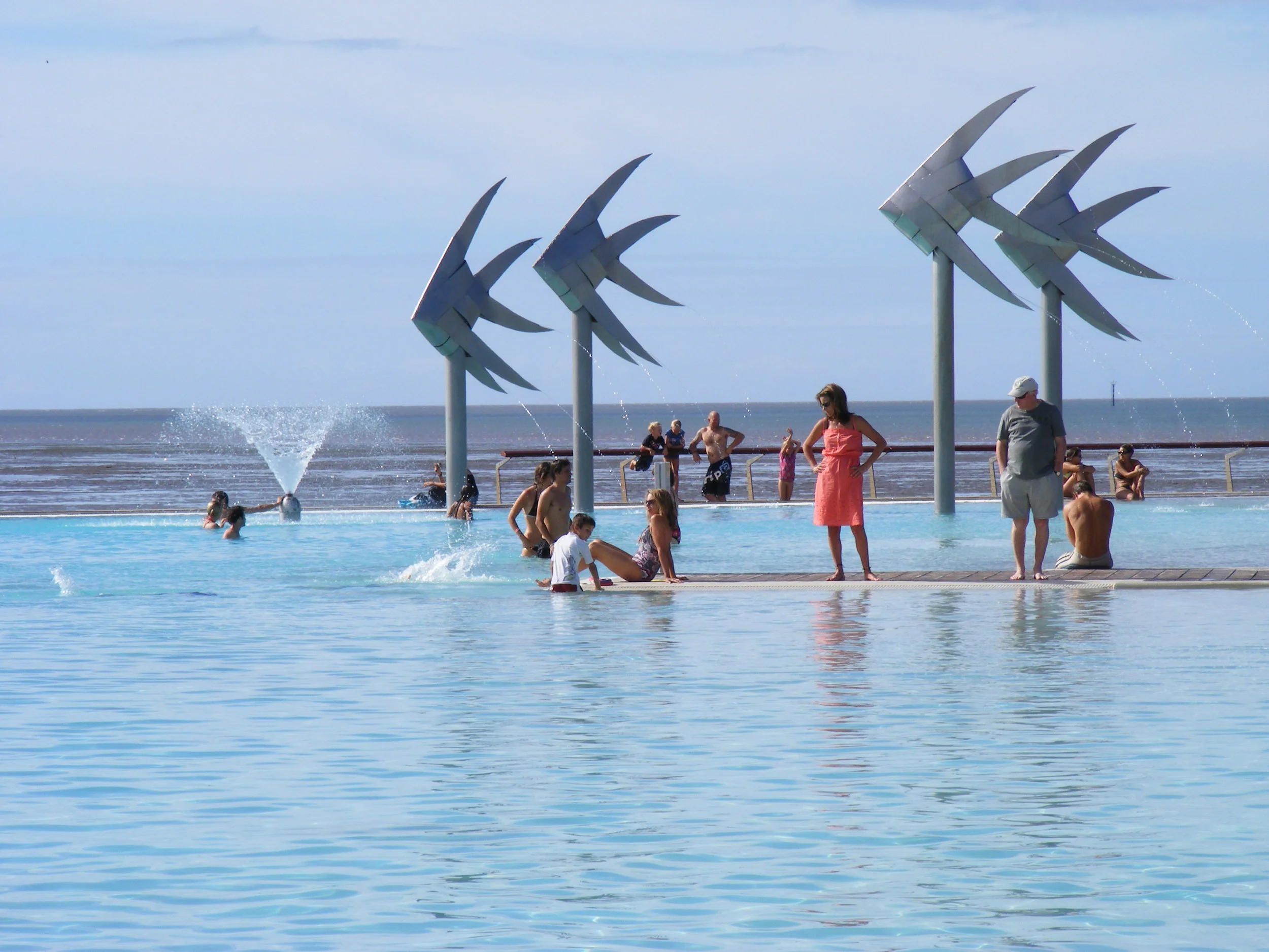 One of the coolest places in Cairns is the harbor where you can take out a boat to the Great Barrier Reef to dive or snorkel. Unfortunately because of the timing of our arrival and departure, the tide was too low and the reef exposed so no snorkeling for us! The harbor is beautiful with a gigantic man made lagoon and views of the immense tidal changes that occur here. The tide went out forever revealing a vast expanse of mud and fishy creatures.