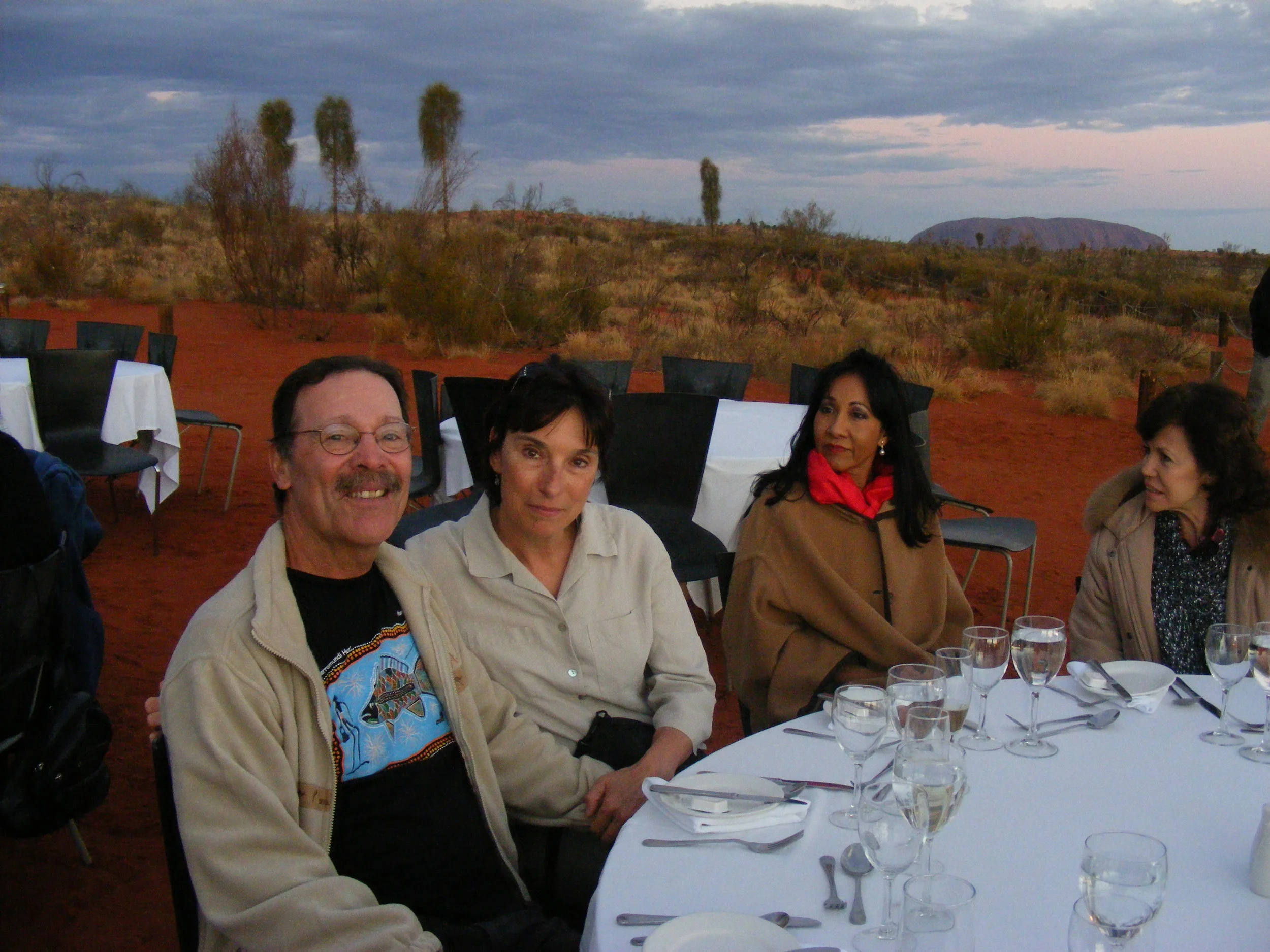 After our crepes and champagne, we sat down to watch the sunset from these great round tables and were grouped with others whom we became instant friends with. As the sun began to set, we made our way to the buffet that had a terrific selection of local foods. As the sun began to set, something amazing happened. Since they don't have many street lights here (they don't want the light pollution to mess up the sky at night) the stars were everywhere. You could just reach up and grab the milky way. As it got darker, we heard the haunting sounds of the didgeridoo and then an astronomer came out and explained whey there was no north star in this part of the hemisphere. You had to find the southern cross to determine your direction and he showed us how. We had a great time looking at the stars and planets through telescopes they brought out for us to use and then headed back to our hotel.