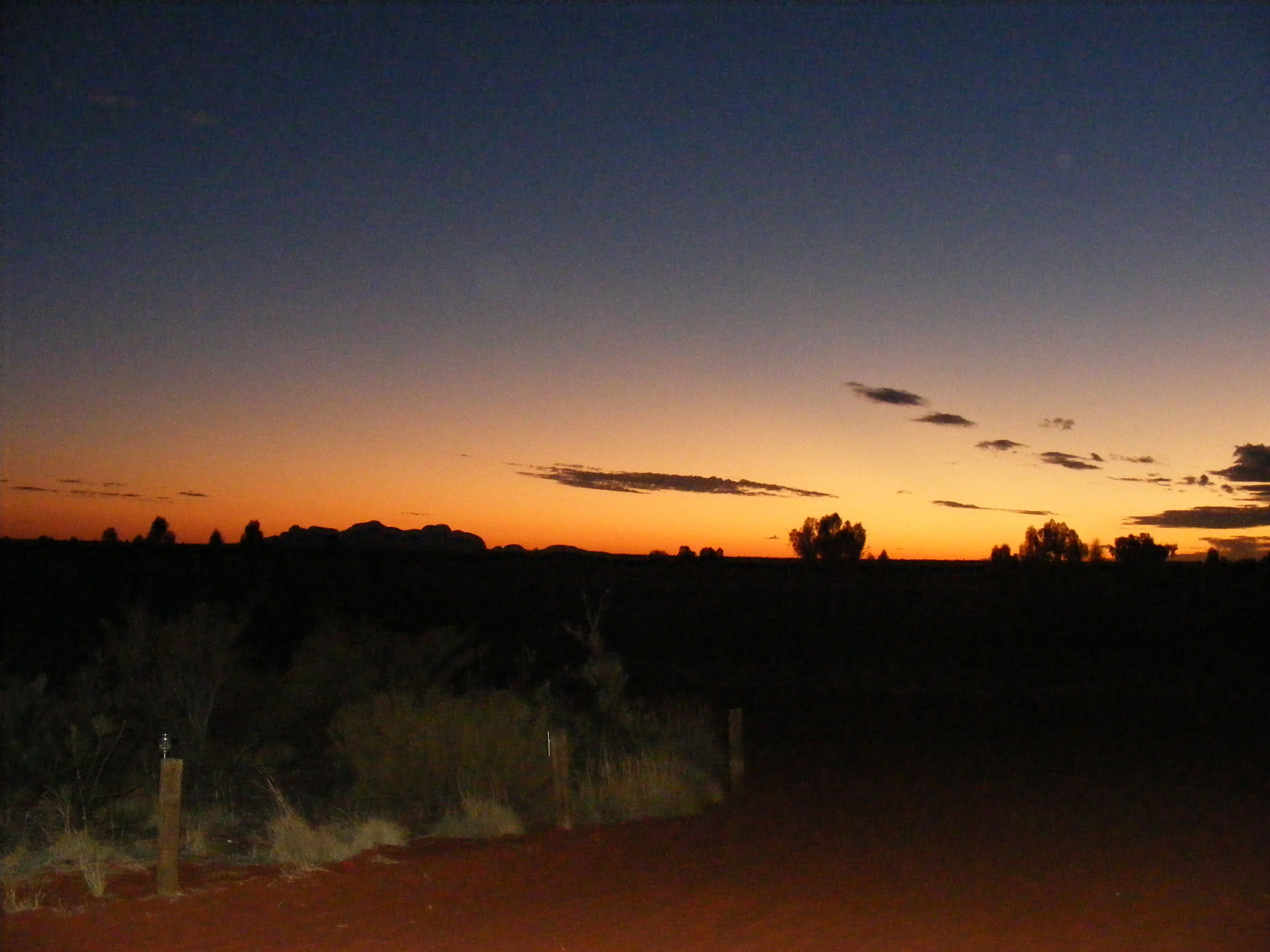 Sunset at Ayers Rock, preparing for a dinner outdoors and a chat about the stars beginning with the "Southern Cross".